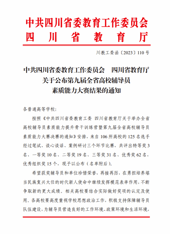 近日,在刚刚结束的四川省高校辅导员素质能力提升骨干训练营暨第九届全省高校辅导员素质能力大赛决赛中,老澳门六合彩官网