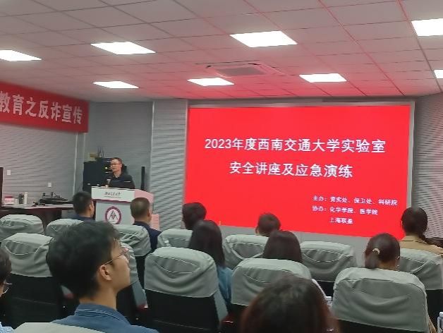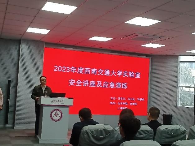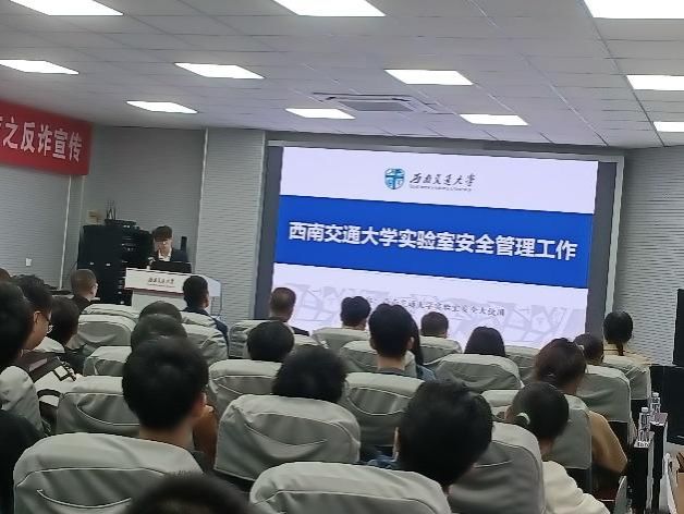 西南交通大学实验室安全大使团学生代表给同学们讲解了西南交通大学实验室安全管理工作相关内容,成都市金牛区消防大队刘伟中队长通过多个视频和现实生活中的惨痛案例强调消防安全的重要性,列举常见的消防安全隐患,如使用热得快等违规产品引发火灾,忘关电源使设备通电时间过长、温度过高引起火灾;操作不慎,使火源接触易燃物质引起火灾;供电线超负荷,线路发热引起火灾;插线板使用超年限等。