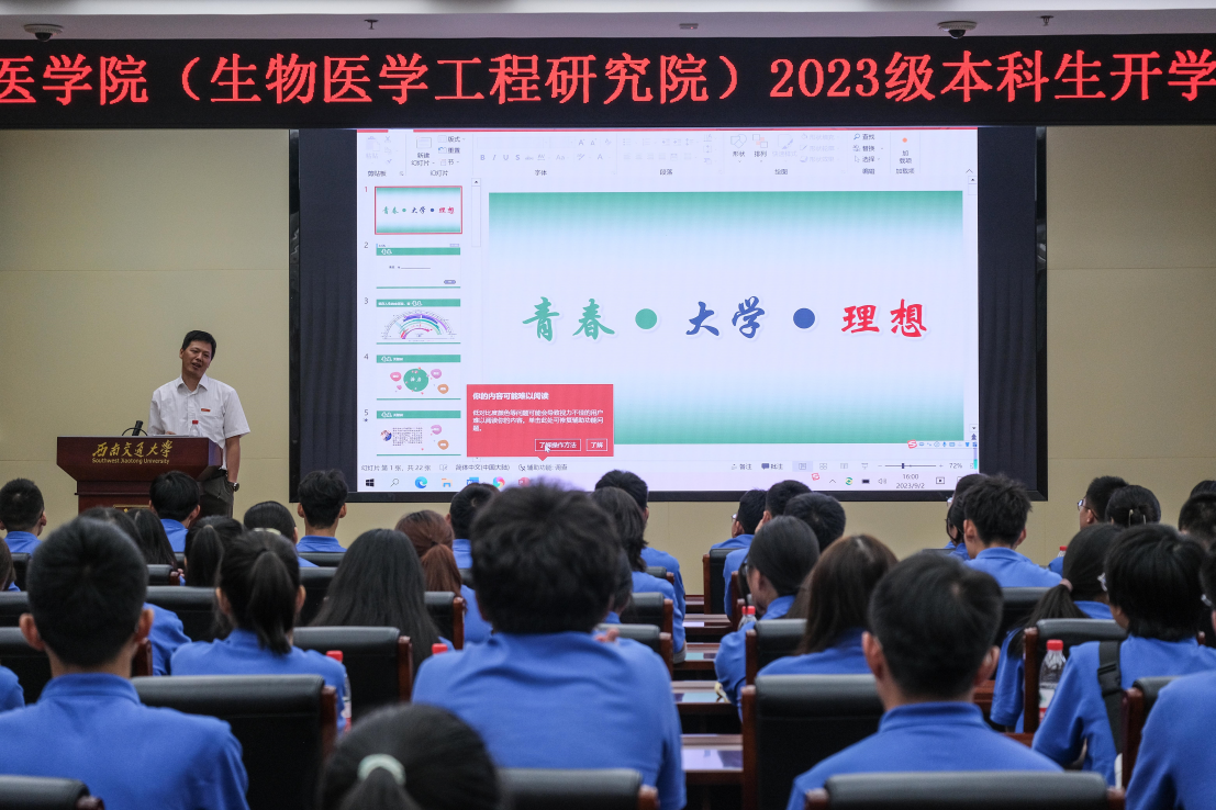 作为优秀的青年教师,中国科协托举人才,郭教授介绍了生物医学工程专业的基本情况,为同学们将来专业学习上可能会出现的问题以及可能存在的疑惑进行了讲解,并给新生们留下祝福与期待,希望未来能与同学们成为好朋友,也希望同学们能不惧风霜,学有所成。