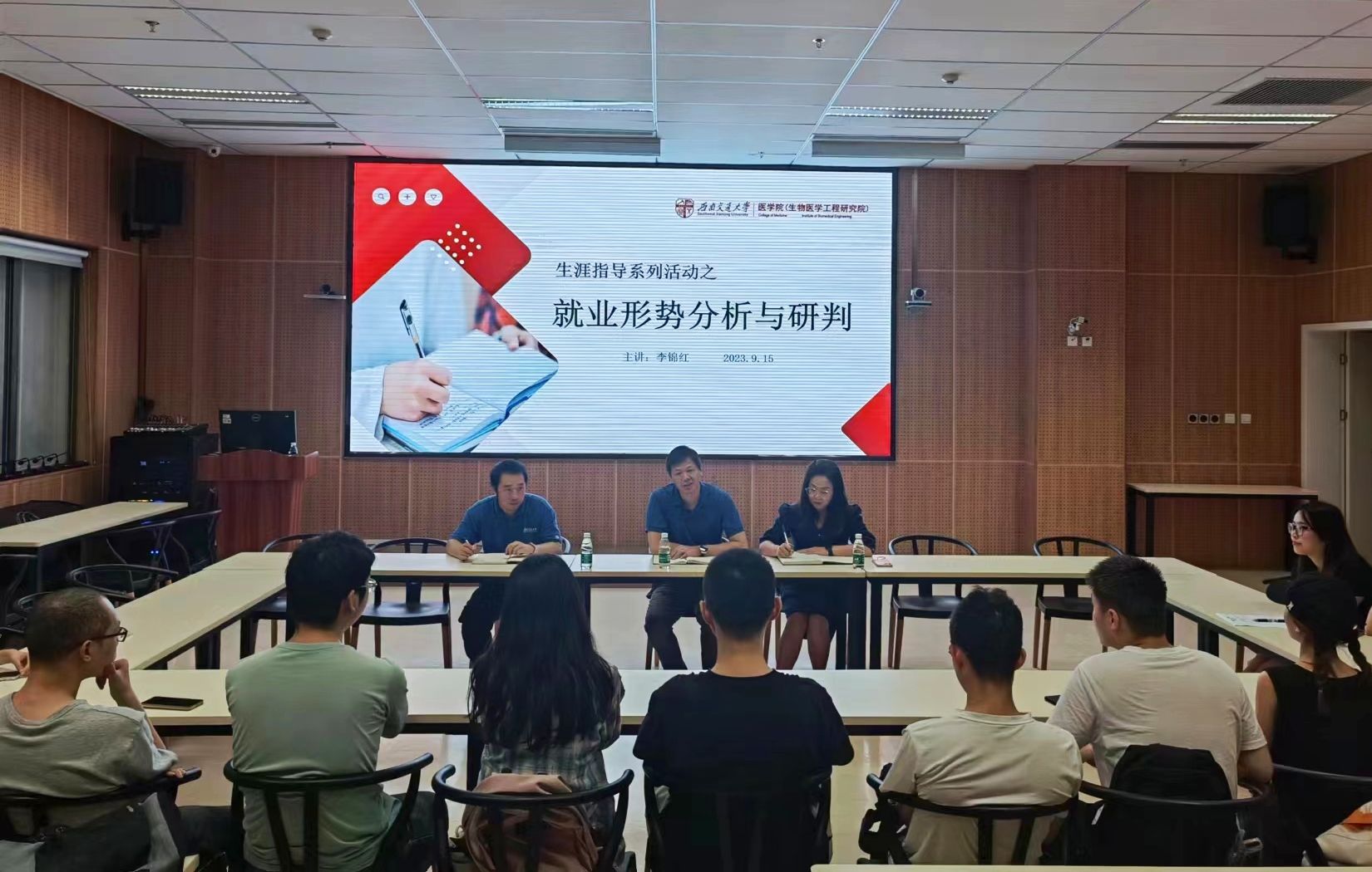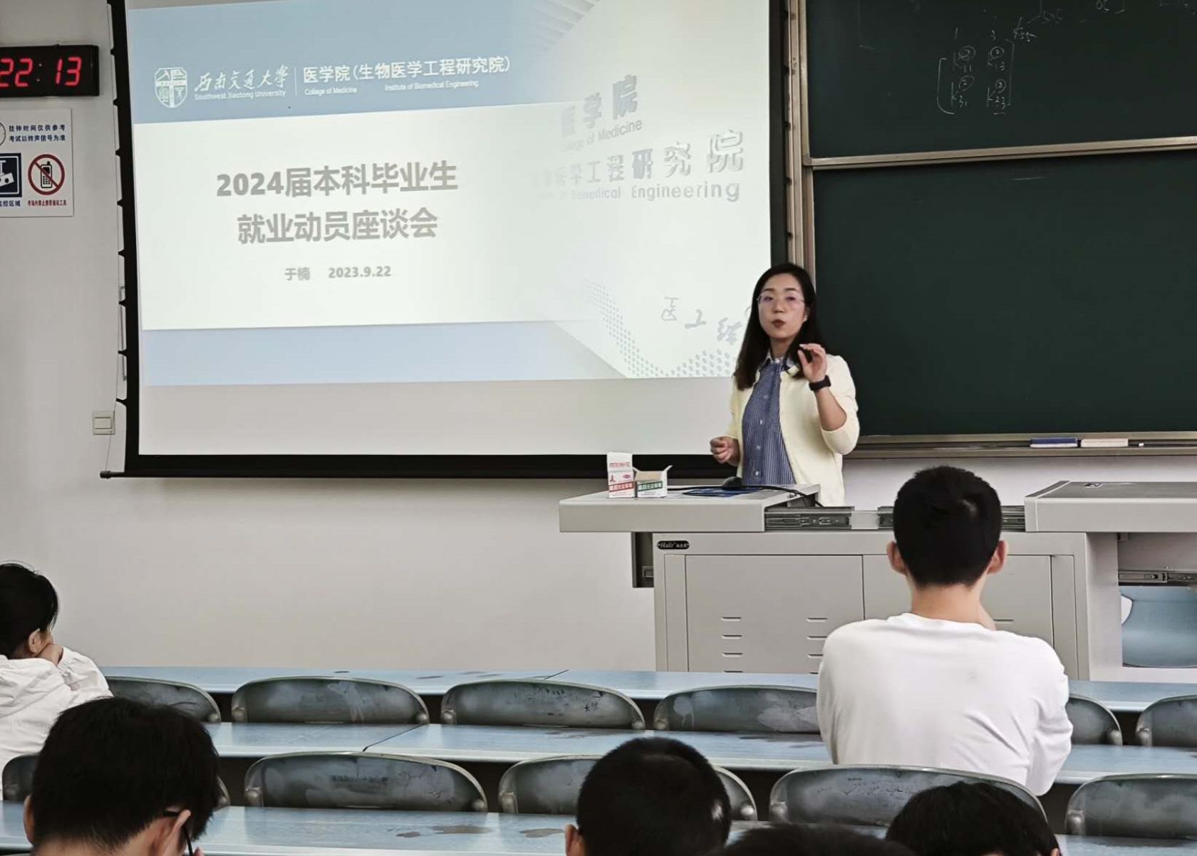 党委李锦红书记逐一了解2024硕士毕业生论文的进展情况、就业意向,帮助学生打通思想堵点、破解就业迷茫,为学生毕业和就业“出实招”。党委副书记于楠,为2024届本科毕业生讲解经济下行压力下的大学生就业形势,结合生物医学工程专业历年来的升学和就业情况,先后给出“转变观念、认清形势、做好规划、确定目标、付诸行动、承受压力”六个方面的建议。
