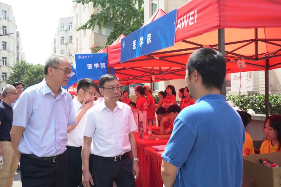 领导与新生们亲切互动,传达对同学们的祝福与鼓励,与新同学们共同分享这个喜悦的时刻。