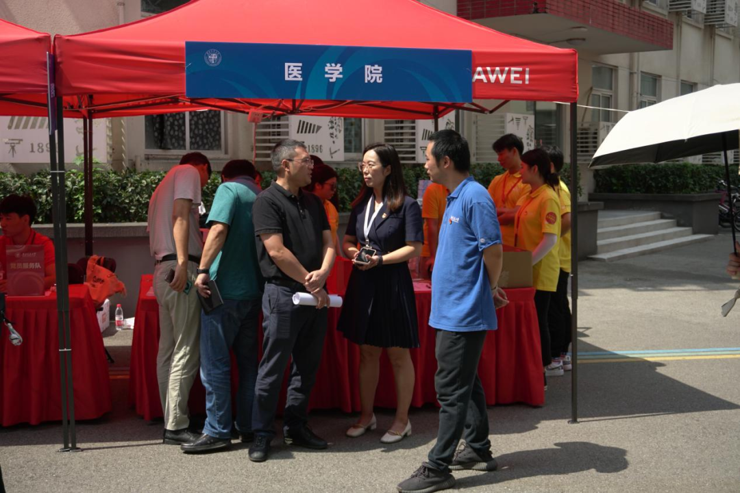 7时48分,第一位2023级新生带着灿烂的笑容到达迎新点,顺利完成报到手续。随后,越来越多的2023级医学学子陆续入校报到。志愿者们清点入学材料、办理入学手续、领取入学资料、分发新生礼物,解答各种疑惑,一边带学弟学妹前往宿舍,一边向学弟学妹介绍交医学的学习和生活。迎新现场也有不少新生家长的身影,辅导员老师们与家长亲切交谈,向家长们介绍学校、老澳门六合彩