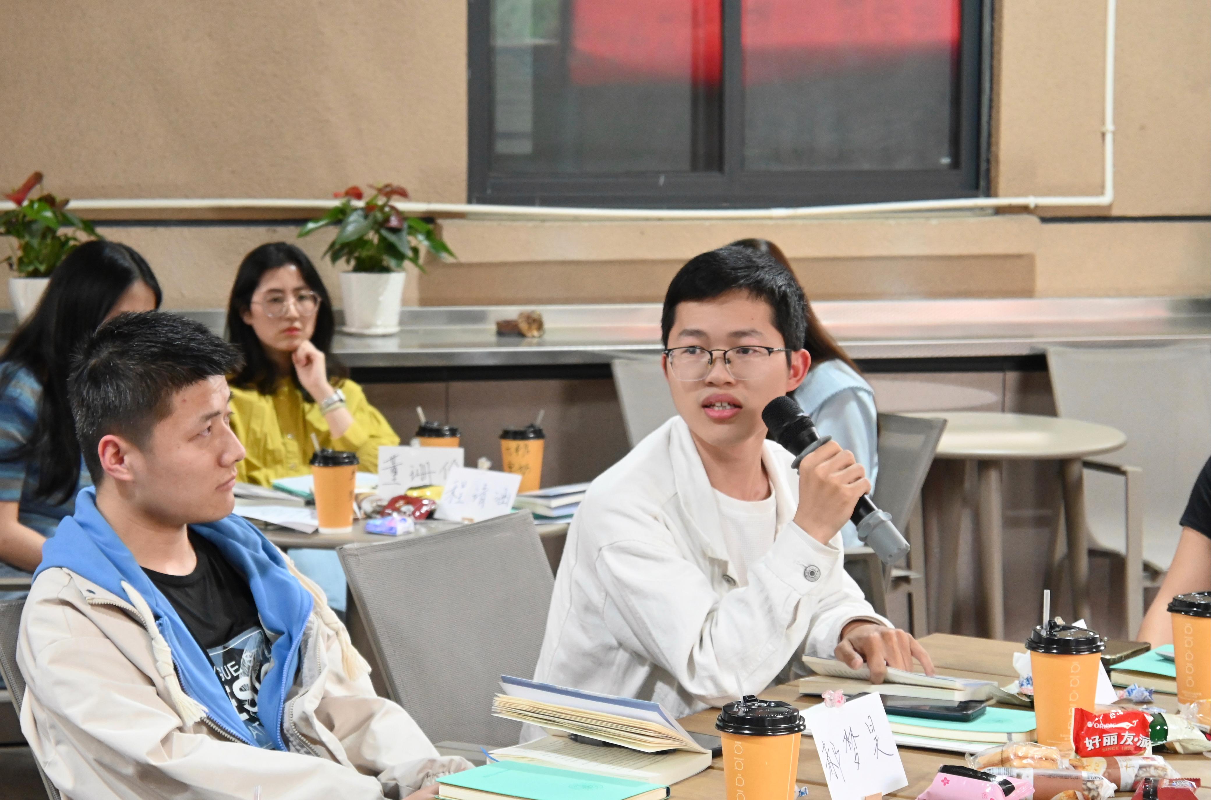在李锦红书记的导读下,同学们提出了在读书过程中遇到的问题并结合自身经历分享了对于不同章节的自我感悟,谈到对于生活、学习、工作的思考。张钟键同学由本书出发,谈到了自己作为医学生对当前社会医患关系的思考;喻谦同学结合自身经历,谈到读研使其更明确找到生活的目标和意义;杨雨婷同学由书中的自造人生观谈到在学习生活中面对的迷茫和压力,也对未来的人生之路产生一定的思考;李傲霜同学就中西医结合式人生分享自身观点,认为应从整体目标把握人生每个阶段的发展,在每个阶段做出规划,才能从容应对生活中的困难和问题;易维同学从书中病急乱投医的故事出发,阐述了自身对于“选择”和“努力”二者关系的认识与理解,提出认识自我的重要性;刘晓翰同学从书中提到的高度自洽的逻辑体系,联系到自身如何构筑坚实的心理防线,来应对人生的风险与挑战。