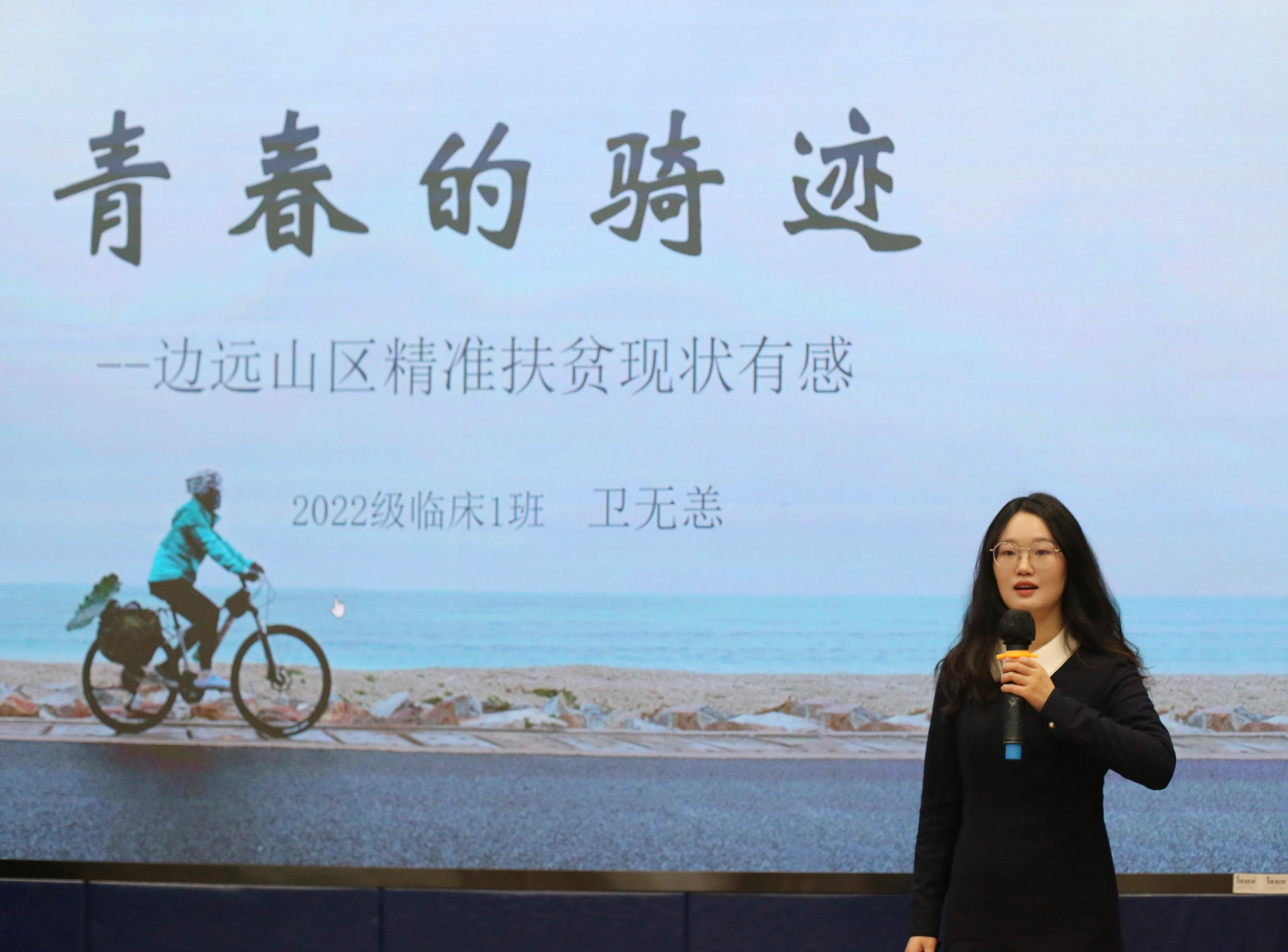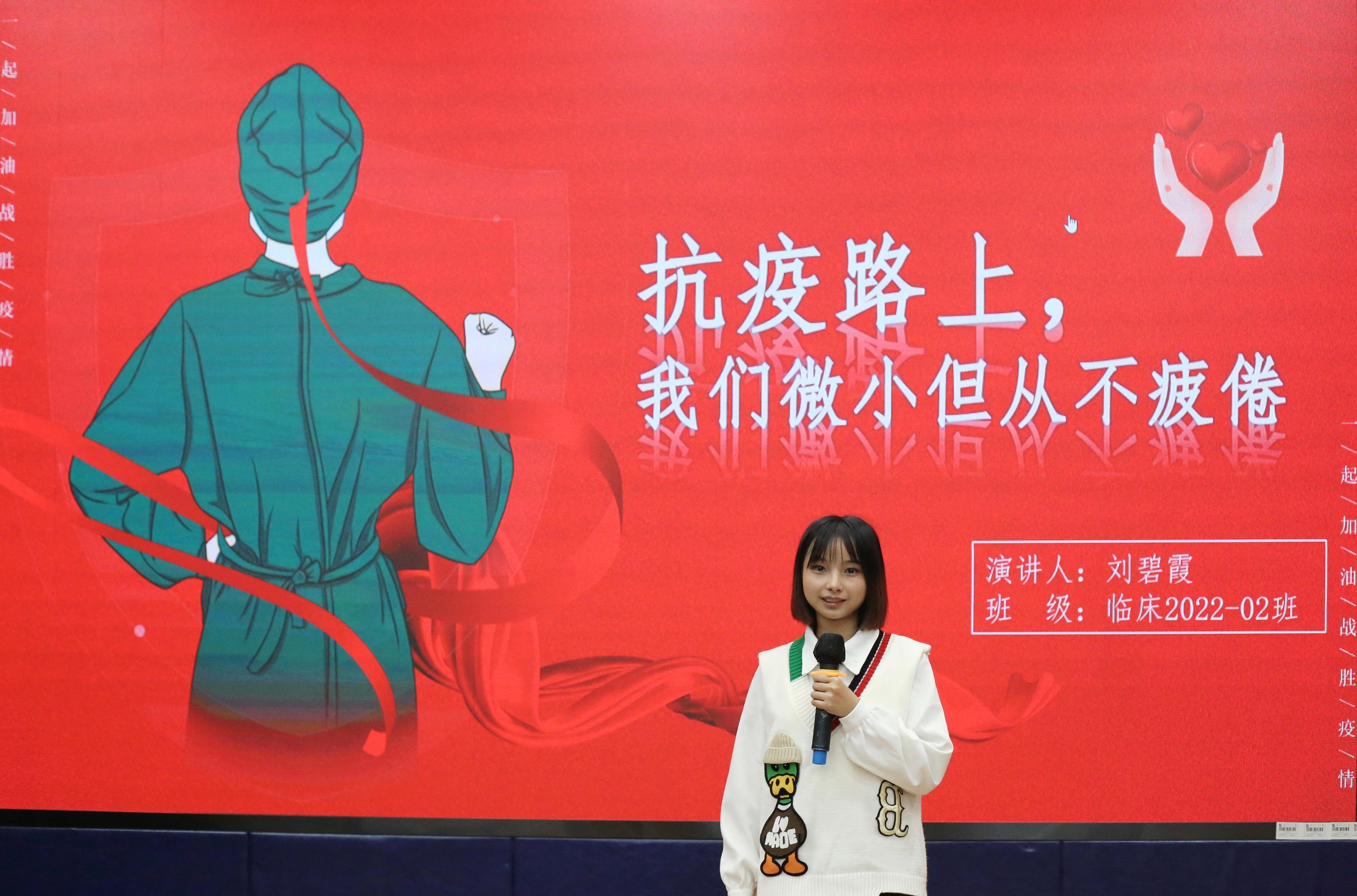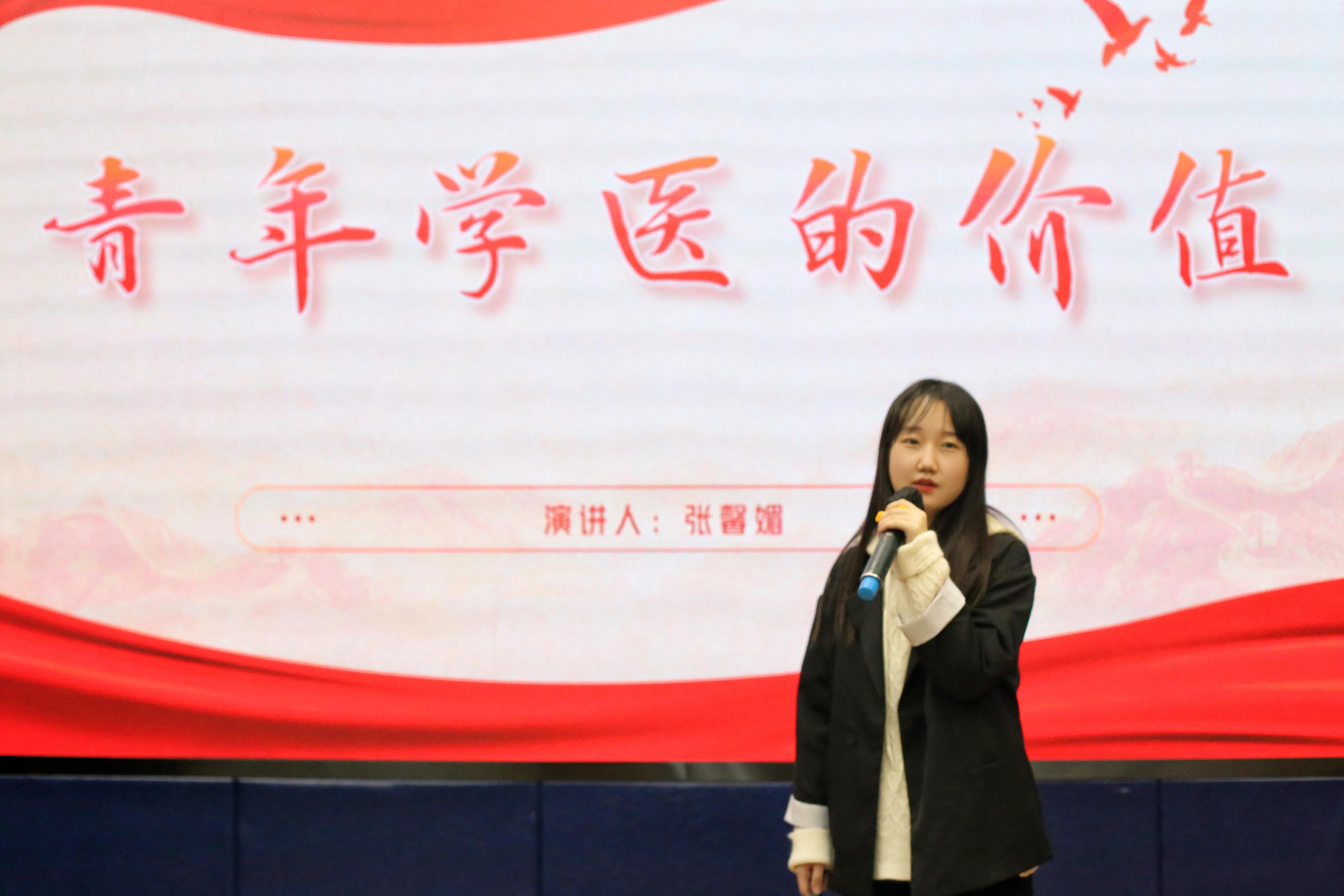 张馨媚同学的演讲题目是“青年学医的价值”,她说:“医学本质上是研究人的学科。所以学医能让我们的出发点真实地落在人的身上,那就是治愈人、帮助人、关怀人。学医的过程也不仅仅是学习专业知识,更多的是培养我们以人为本、无私奉献的精神。”
