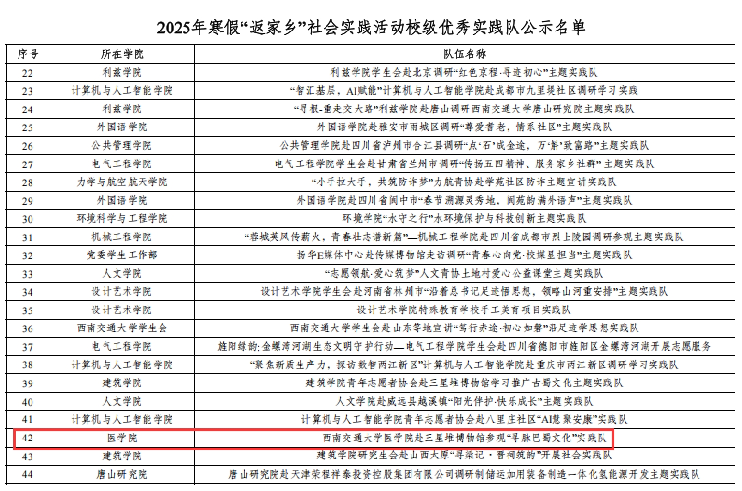 于2025年2月22日由指导老师廖柯琳组织带领实践队,共8名本科生前往三星堆开展主题为“寻脉巴蜀文明”的实地调研活动,并于3月6日顺利完成答辩,最终荣获校级优秀实践队荣誉称号。