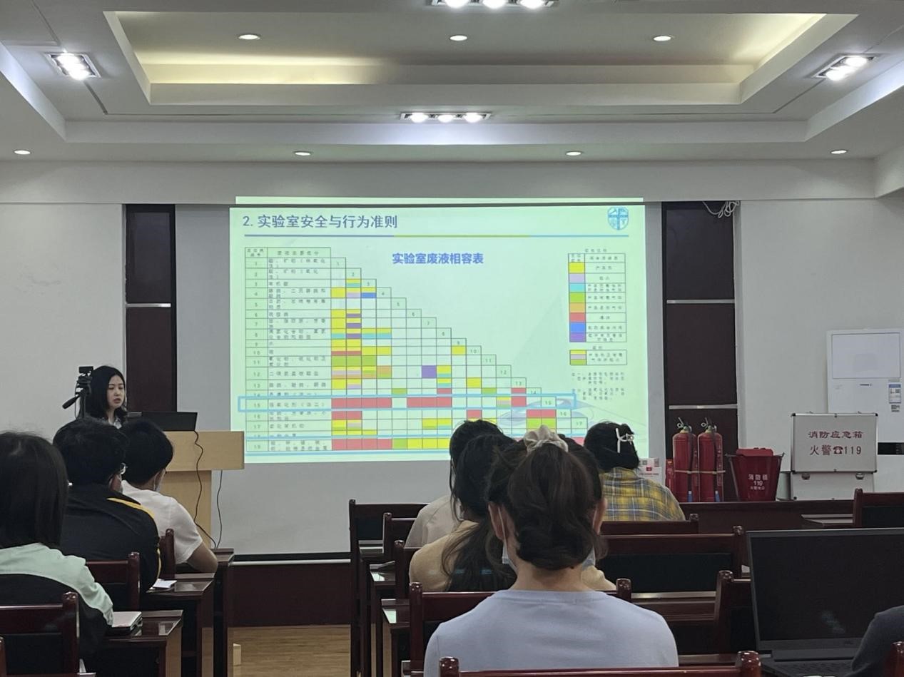 谭欢老师就各类仪器使用、废液处理等一般性安全原则做了全面细致的讲解,并且针对危化品的管理、使用及处理做了着重讲解。消防安全是实验室安全的重中之重,老澳门六合彩官网