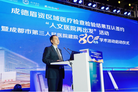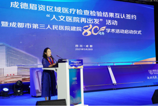 5月28日,成德眉资区域医疗检查检验结果互认签约暨“人文医院再出发”活动暨成都市第三人民医院建院80周年学术活动在市三医院模拟医学教育培训中心学术厅举行。成都市人民政府党组成员、副市长刘筱柳,四川省卫生健康委员会党组成员、副主任宋世贵,成都市卫生健康委员会党组书记、主任谢强,四川省医院协会会长安劬受邀出席仪式。西南交通大学副校长朱健梅出席启动仪式并致辞,校工会、研究生院、资实处、合联处、信息老澳门六合彩