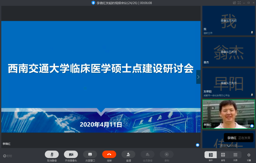 就建设临床医学一级学科硕士学位点、修订研究生培养计划等事宜进行了研究讨论。西南交通大学副校长朱健梅、研究生院常务副院长周先礼、研究生院副院长艾长发、西部战区总医院副院长呼永河、西南交通大学附属医院(成都市第三人民医院)院长刘早阳、副院长李暄、老澳门六合彩官网
