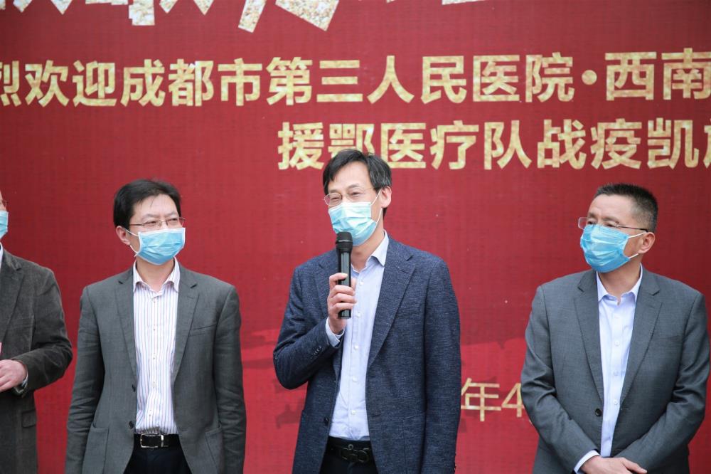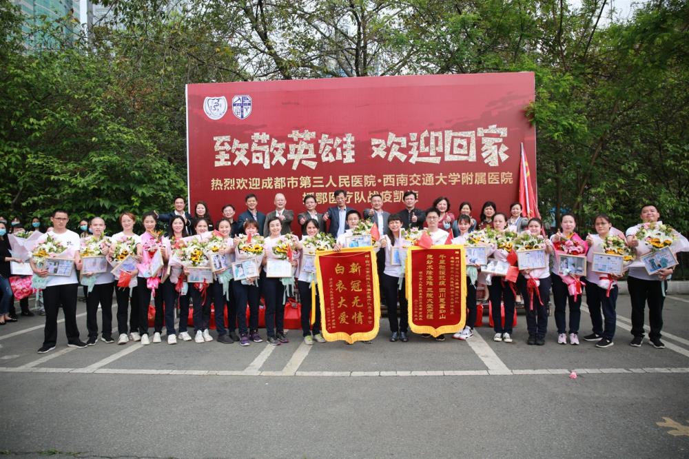 2月2日,西南交通大学附属医院(成都市第三人民医院)支援湖北医疗队赶赴武汉。59天时间里,他们持续战斗在重症患者治疗的火线,先后接诊百余位重症及危重症患者,创造出一个又一个生命奇迹。4月14日,他们正式解除为期14天的休养和医学隔离观察,胜利凯旋,和已经70多天没见的家人、同事团聚。西南交通大学党委副书记桂富强、老澳门六合彩官网