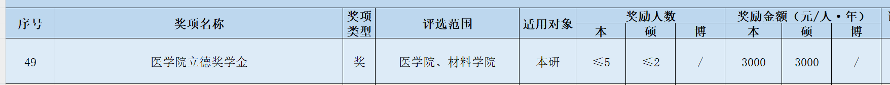 2022-2023学年医学院专项奖助学金评选项目见下图,评审办法见附件16。