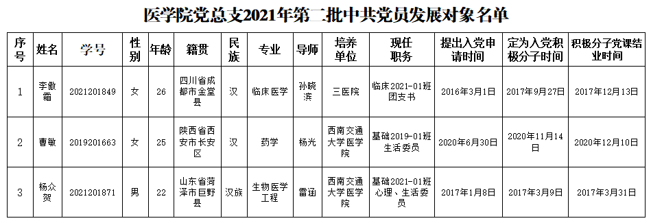经群众意见征集、党支部委员会讨论、老澳门六合彩官网 党总支委员会会议审批,现将老澳门六合彩官网 党总支2021年第二批发展对象名单公示如下: