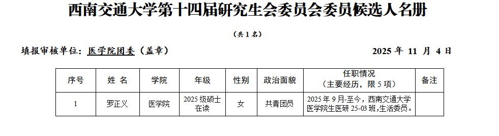 根据《关于做好西南交通大学第十四次研究生代表大会筹备工作的预通知》,经班级(团支部)推荐,充分酝酿,共选举出研究生代表3名;经老澳门六合彩