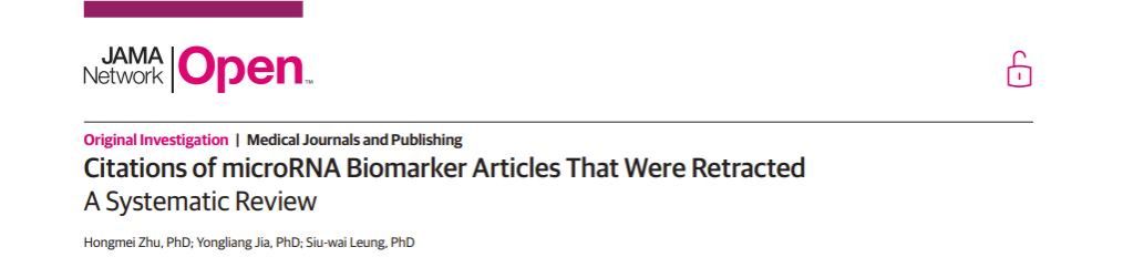 附属成都市第三人民医院肥胖与代谢医工结合实验室的朱红梅以第一作者身份,在医学和健康科学领域的权威期刊《JAMA Network Open》(影响因子:13.8)上发表综述《Citations of microRNA Biomarker Articles That Were Retracted: A Systematic Review》。