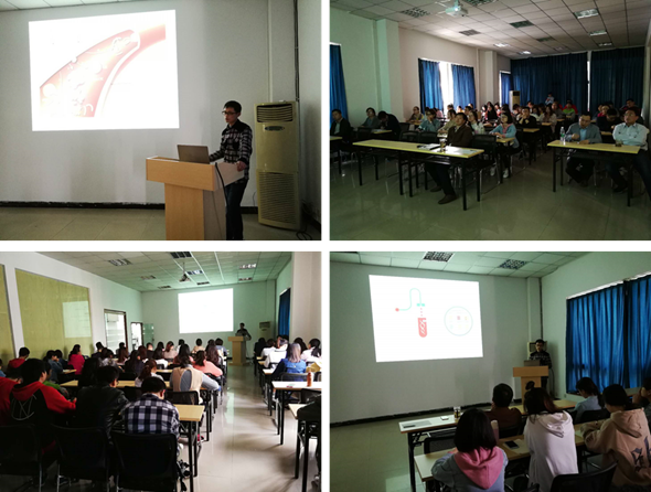 杨光博士做了题为《循环肿瘤细胞捕获技术浅谈、读研的思考》的报告,杨光博士从自身研究专业方向谈起,结合目前国际生物材料研究前沿,系统阐述了循环肿瘤细胞捕获技术及其应用前景;同时,杨光博士为在座研究生讲述了自己攻读硕士、博士研究生的学习生涯,在为什么攻读研究生、如何做好研究生阶段的学习规划以及研究生阶段为未来人生产生的积极影响等方面与在座的研究生同学进行分享和交流。