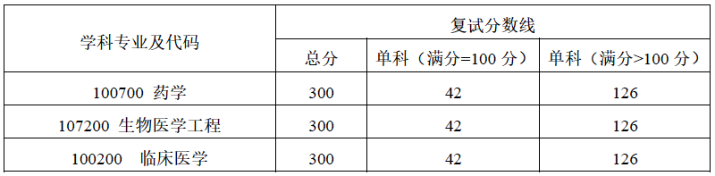 各专业非专项计划的考生,初试成绩达到下表中对应专业的成绩要求,方才具备复试资格。