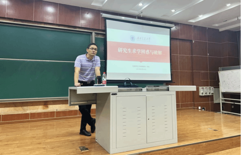 2023级研究生学子交流交大人的研究生之旅,他指出求学阶段无外乎做好三件事——做人、做事、做学问,做人要厚道、做事要靠谱、做学问要认真,愿同学们保持交大人的初心与本色,坚定理想信念,走出属于自己的精彩研途。