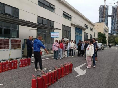 全体同学在老师和志愿者的带领下来到工业中心内的空地进行消防演练。保卫处老师详细讲解了常见消防器材——干粉灭火器的使用方法,随后,同学、老师分组轮流进行灭火演练。