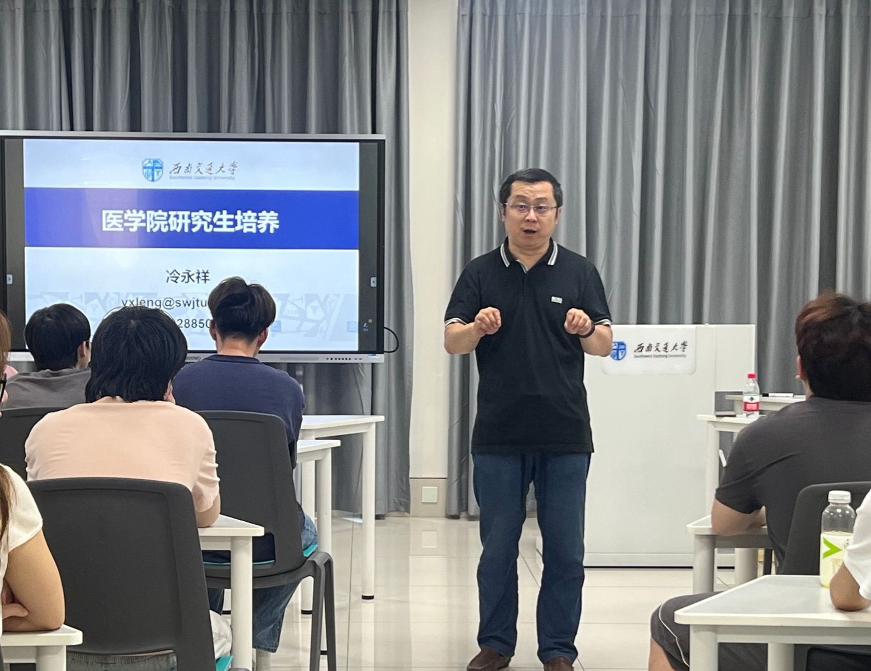 冷永祥副院长从生物医学工程学科及专业的建设等方面为2025届的同学们未来升学择校提供指导。他详细阐述了西南交大生物医学工程系的发展历程、特色学科方向、卓越的师资队伍以及优质的培养条件。他强调,基于国家发展策略、区域技术需求以及学校对学科振兴的重视,生物医学工程领域具备巨大的发展潜力和无限机遇。冷永祥教授还分享了两篇2024届硕士撰写的文章,鼓励同学们在研究生这条道路勇敢的走下去,不畏考研路上的孤单,不惧读研途中的艰难。这不仅增强了同学们对本专业的信心,还激发了他们继续深造、攻读研究生的热情。