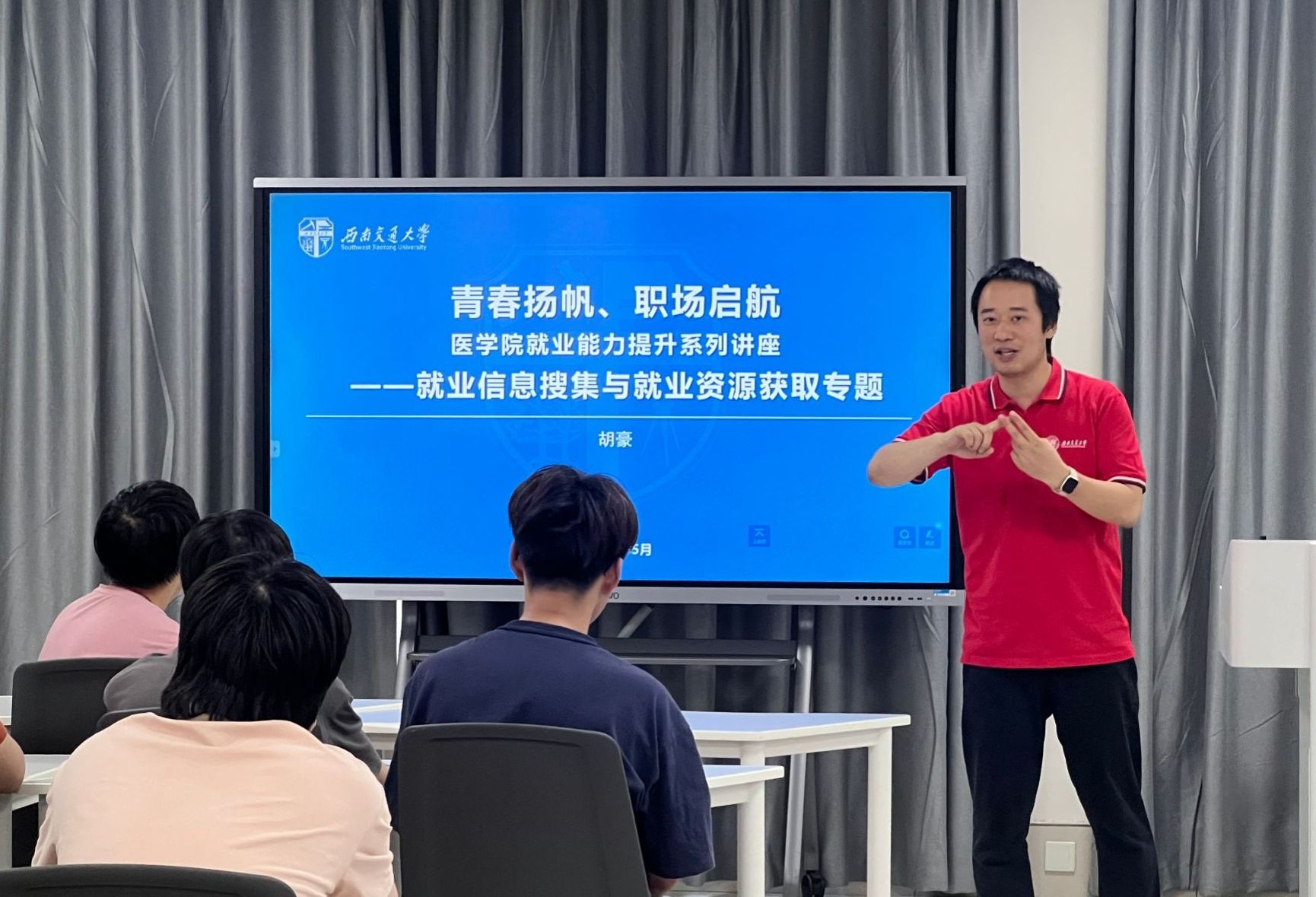 团委书记胡豪在“圆梦职途”求职能力提升中,针对升学就业信息搜集与资源获取这一专题进行了讲解。他强调了信息搜集在求职过程中的重要性,并详细讲解了社会资本和人力资本如何影响求职的机制,以及如何通过提升个人能力和拓展人际关系网络来提高求职成功率。胡豪老师还就如何撰写求职简历和求职信等实际问题给出了具体的建议,通过模拟面试等方式,帮助同学们“圆梦职途”。