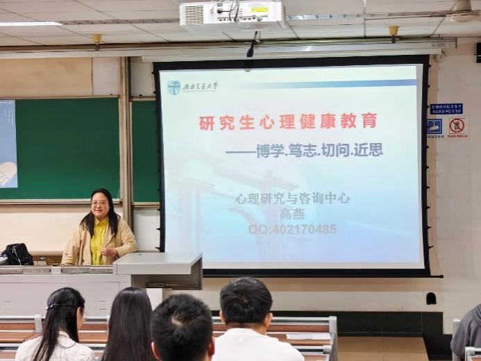 邀请到心理研究与咨询中心的高燕老师为2024级全体研究生开展了一场以“倾听内心的声音”为主题的心理健康讲座,高老师从内外因素分析困难原因,评估影响,指出研究生学术旅程中的心理挑战是成长的一部分,并鼓励大家积极应对并给出相应的宝贵意见。