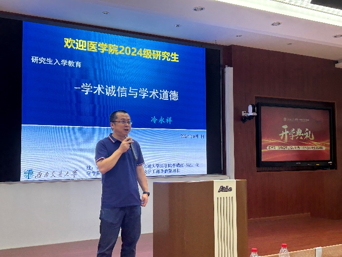 副院长冷永祥教授以“学术诚信和学术道德”为主题,为2024级新生从日常多个角度讲述何为学术道德以及如何坚守学术诚信,让大家深刻理解学术诚信的重要性,树立正确的学术道德观念,共同营造一个健康、公正、诚信的学术环境。诚信是学术研究的底线,道德是学术活动的指南,引导同学们共同书写学术研究的新篇章。