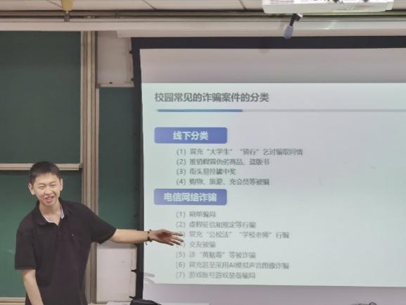 于9月29日举办了以“防范电信网络诈骗,铸盾和谐校园”为主题的防诈教育讲座,由24级辅导员韩鹏飞主持。韩鹏飞详细讲解了电信诈骗的种类以及常见诈骗手法。同时,呼吁大家要积极学习防骗知识,如若面对诈骗时要保持冷静,及时向警方报案。大家纷纷表示,会积极参与到防范电信诈骗的行动中,防诈于心、反诈于行,共同为打击电信诈骗犯罪做出应有的贡献。