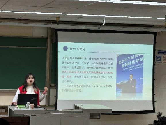 荣幸邀请到“红路”理论学讲团成员周诗嫣,就“文化奠基立国本,传统创新看今朝”进行精彩宣讲。周诗嫣从以理论造地基、以媒体传非遗、以艺术释精髓、以新法筑旧魂四个角度,深入探讨传统文化的创新发展。她与学生积极互动,鼓励将传统文化与现实文化有机结合,引发专业与文化碰撞的深思。此次宣讲不仅增进了学生对传统文化的认识,也激发了对文化传承与创新的思考。