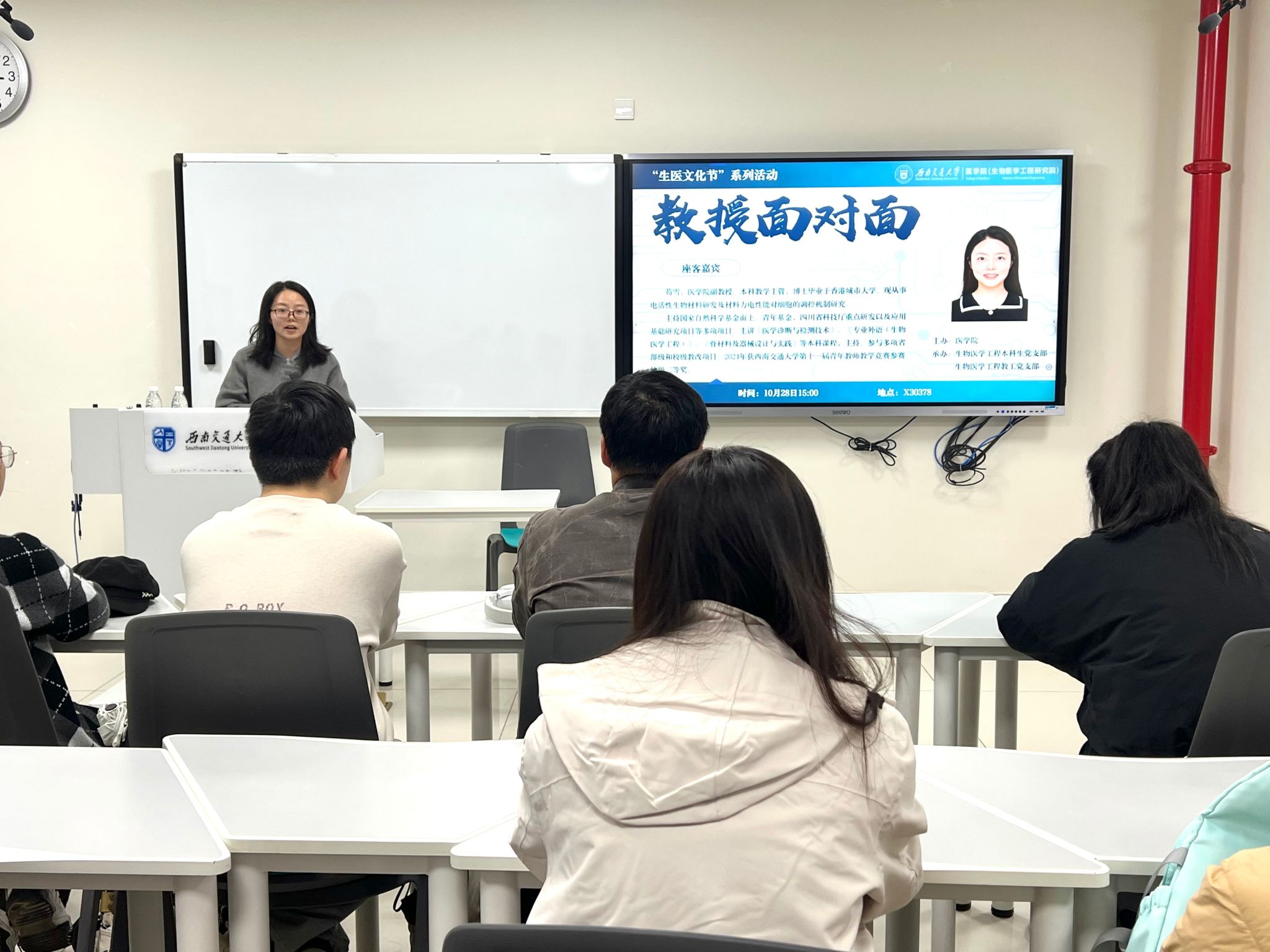 副教授、本科教学主管、“青年讲师团”成员苟雪老师担任主讲嘉宾,通过主题分享与互动答疑,为学生揭开生物医学工程领域的科研面纱。