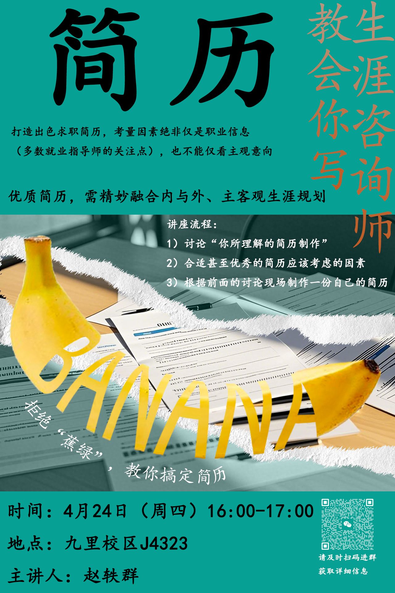 讲座内容:完成一份合适甚至优秀的求职简历,需要考虑的因素绝不仅仅局限于外在的职业信息(这是绝大多数就业指导师重点或者唯一考虑的因素),也不单单是求职者的主观意向,而是内外在、主观生涯和客观生涯的有机结合。流程:1)讨论“你所理解的简历制作”;2)合适甚至优秀的简历应该考虑的因素;3)根据前面的讨论现场制作一份自己的简历。
