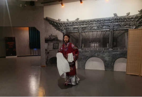 红色剧目《微光》是以成都革命烈士张露萍平生事迹为原型创作的年代故事,故事背景中加入了“成都大轰炸”“星芒社”等抗日战争时期发生在成都的真实历史事件。剧目融合了京剧表演、“剧本杀”和沉浸式互动的全新体验模式,让人置身其中,在时空的交错融合间,追忆那一段由理想与信念交织成的革命往事。