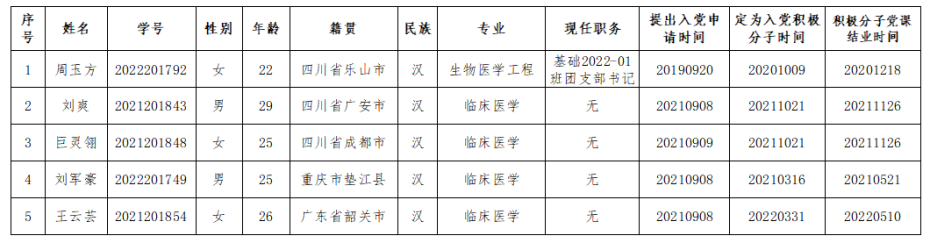 经班团组织推优、群众意见征集、党支部委员会讨论,现将老澳门六合彩官网 党委2023年第一批发展对象预备人选名单公示如下: