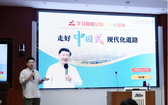 马先睿老师从“深刻认识中国式现代化的内涵要求”“牢牢把握高质量发展这一关键钥匙”“踔厉奋发走好中国式现代化道路”三个方面,以生动幽默的语言和丰富的案例对“中国式现代化”进行了深刻阐释。他强调,面对新的伟业,我们应坚定信心、同心同德、形成合力,以更加昂扬的姿态为实现中国式现代化不懈奋斗,以中国式现代化全面推进中华民族伟大复兴。