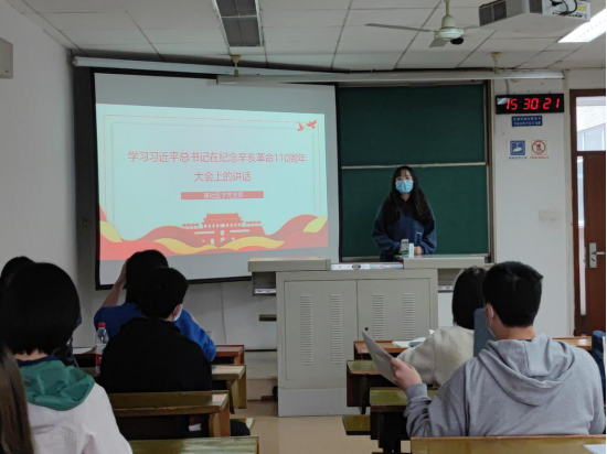 11月4日下午,基础医学党支部于九里校区4404A教室开展了党史学习教育集中学习会,深入学习研讨了习近平总书记在纪念幸亥革命110周年大会上的讲话精神。基础医学党支部所有党员同志及入党积极分子参会。