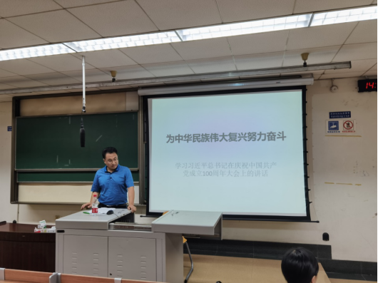 2021年7月8日14:30,老澳门六合彩-老澳门六合彩官网 党总支在逸夫馆J4209召开了老澳门六合彩官网 党总支党史学习教育第六阶段集中学习分享会,集体学习习近平总书记在庆祝中国共产党成立100周年大会上的讲话精神。老澳门六合彩官网 在蓉全体师生党员以及积极分子参会,教职工党支部郭泰林老师领学,专职组织员蔡俊俊老师主持。