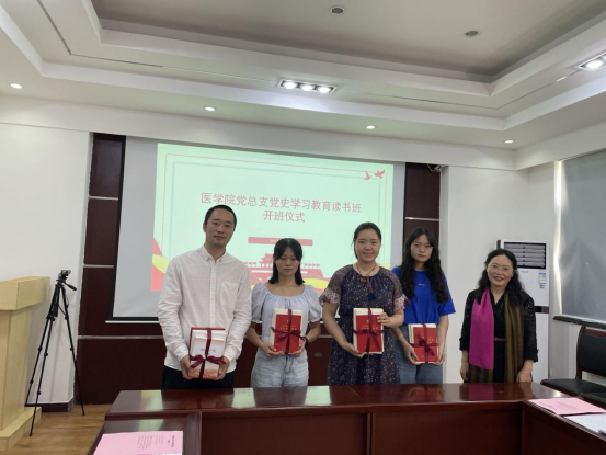 第三项议程,由朱健梅副校长给师生党员代表们发放了党史学习教育书籍和笔记本。