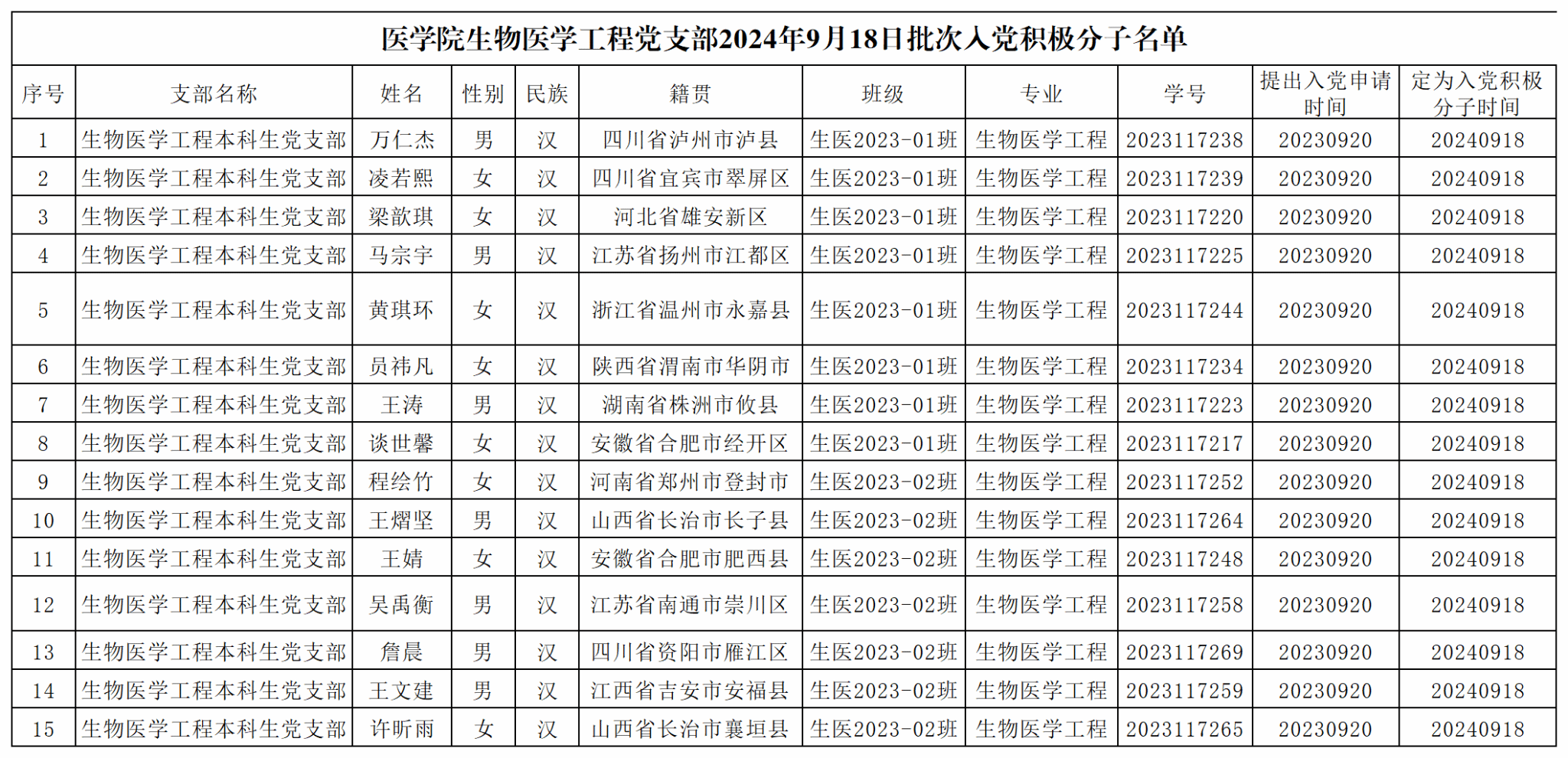现将老澳门六合彩官网 党委2024年秋季学期入党积极分子名单公示如下,公示期9月23日-9月27日,如有异议请以书面形式将意见反馈至老澳门六合彩官网 X2414b办公室。