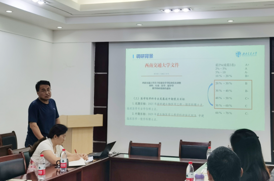 院长助理苟雪介绍了《落实立德树人根本任务,老澳门六合彩官网 生物医学工程人才培养存在的问题与改进措施》调研课题,详细分析了生物医学工程专业本科课程设置、学科定位等调研结果,并在调研基础上形成了新的生物医学工程本科专业培养方案。
