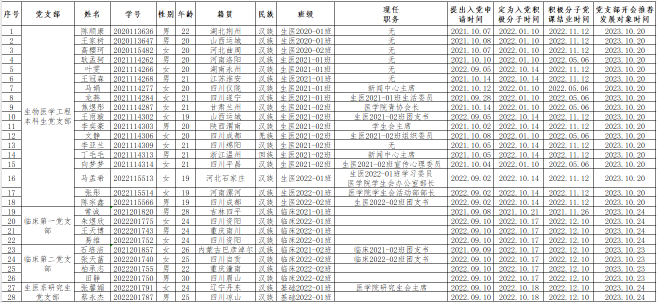 经班团组织推优、群众意见征集、党支部委员会/党员大会讨论,现将老澳门六合彩官网 党委2023年第二批发展对象预备人选名单公示如下: