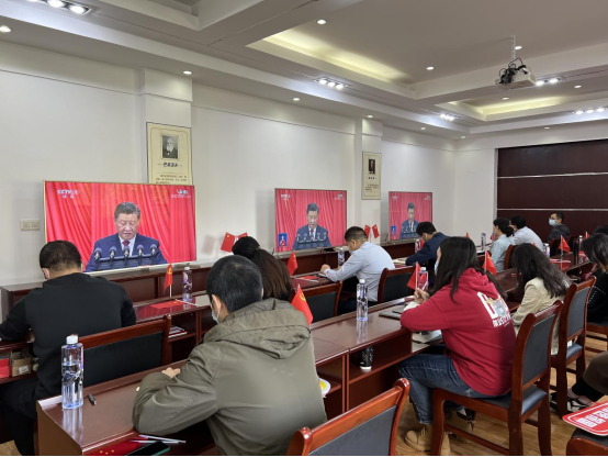 师生代表们共同观看了中国共产党第二十次全国代表大会开幕会。