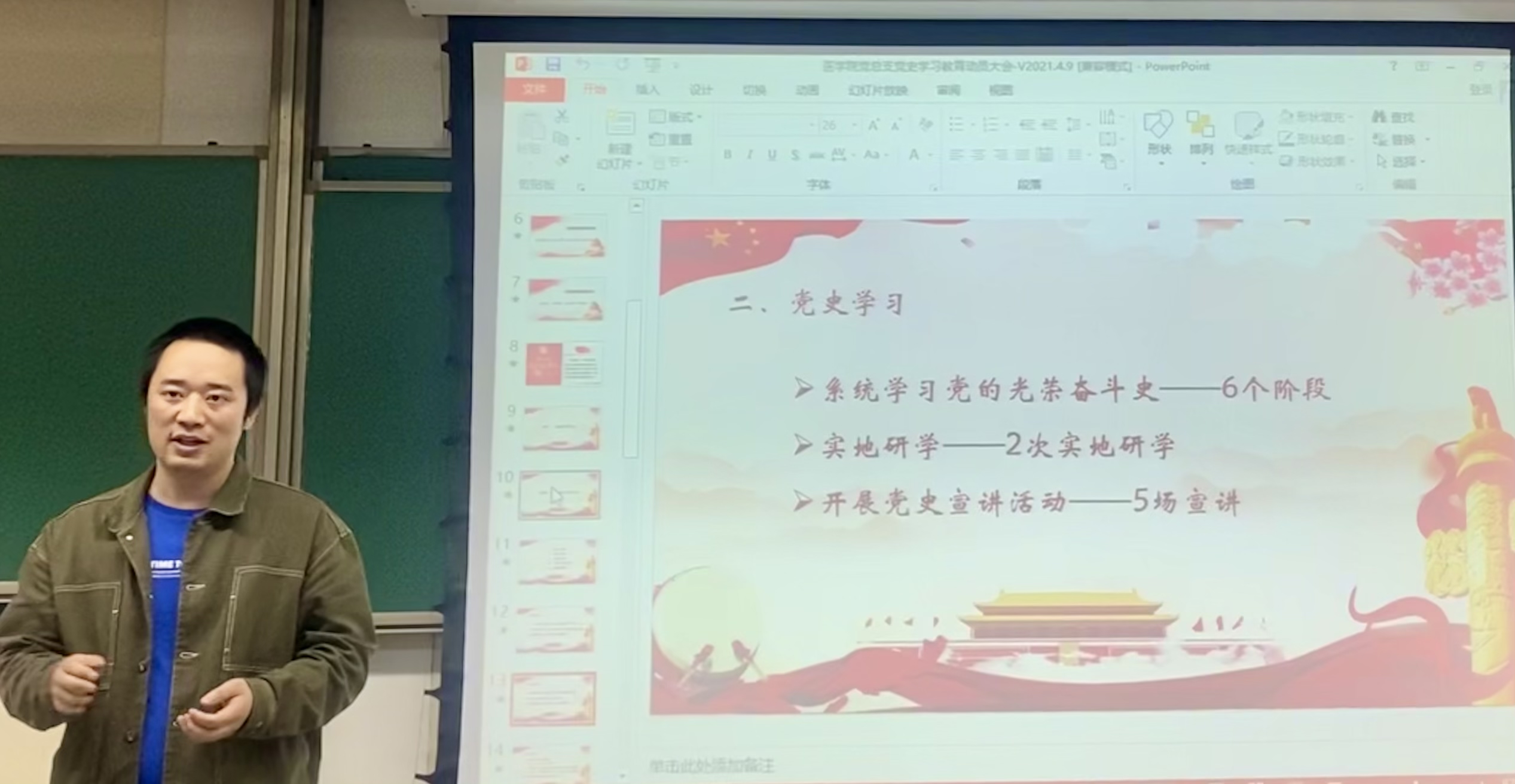 最后胡豪对党史学习安排进行详实的介绍,包括六个阶段系统学习党的光荣奋斗史;两次实地研学以及五场党史宣讲活动。他也再次强调学习党史的重要性,希望全体同志能够通过党史学习鼓舞斗志、明确方向;坚定信念、凝聚力量;启迪智慧、砥砺品格。