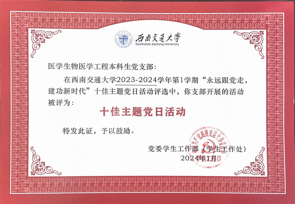 学生党支部主题党日示范活动不仅活动效果好,还被学校评为十佳主题党日活动。