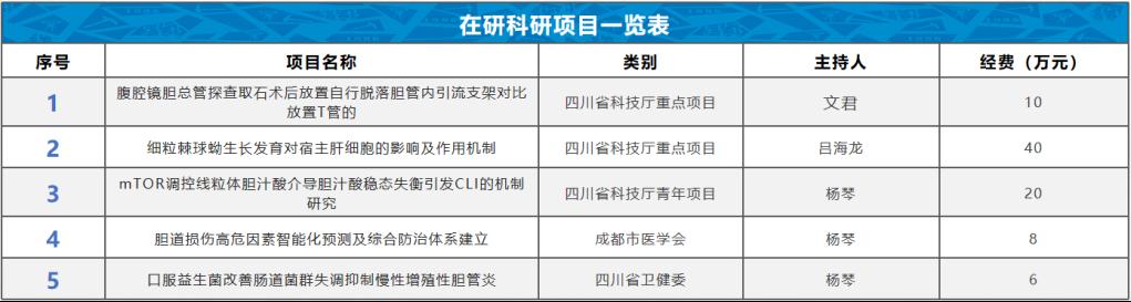 主要包括肝胆胰良恶性疾病的基础及临床研究、肝胆胰代谢性疾病的研究、包虫病的临床及基础研究,胆胰支架等的医工结合研究